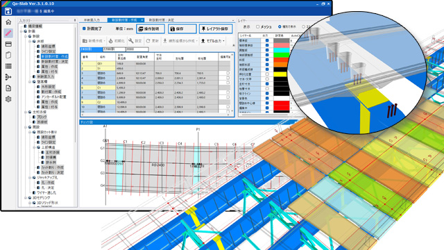 登録したルールをもとに新設床版と壁高欄の割付け、既設床版のカット割りの自動作成、半断面分割施工対応、 ハンチ形状シミュレーション、3Dモデル出力、施工計画支援が可能なBIM/CIMシステムです。