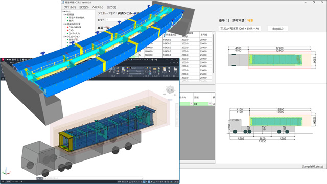 登録したルールをもとに新設床版と壁高欄の割付け、既設床版のカット割りの自動作成、半断面分割施工対応、 ハンチ形状シミュレーション、3Dモデル出力、施工計画支援が可能なBIM/CIMシステムです。