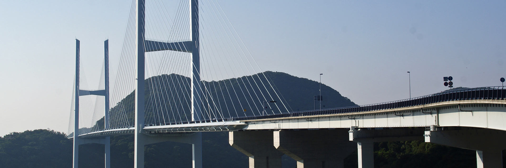 河川や海峡部をひとまたぎする壮大な吊橋はスパンをもっとも大きくとれる形式です。