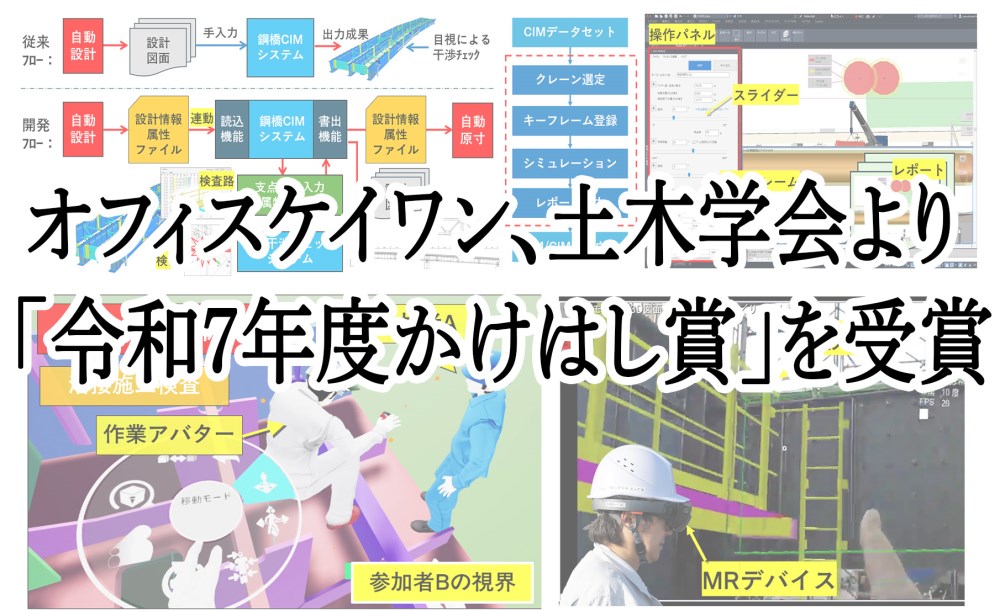 令和7年度土木学会全国大会年次学術講演会において、当社より発表した講演「鋼橋の設計データ連携と3Dモデル活用によるフロントローディング技術」が、土木学会田中賞選考委員会より、令和7年度「かけはし賞」を受賞しましたのでお知らせいたします。かけはし賞は、土木学会全国大会年次学術講演会に投稿する報文のなかから、橋に関するイノベーションや生産性向上、社会性や将来性に優れた講演に対して授与されるものです。