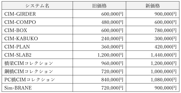 橋梁CIMシステム価格改定のお知らせ